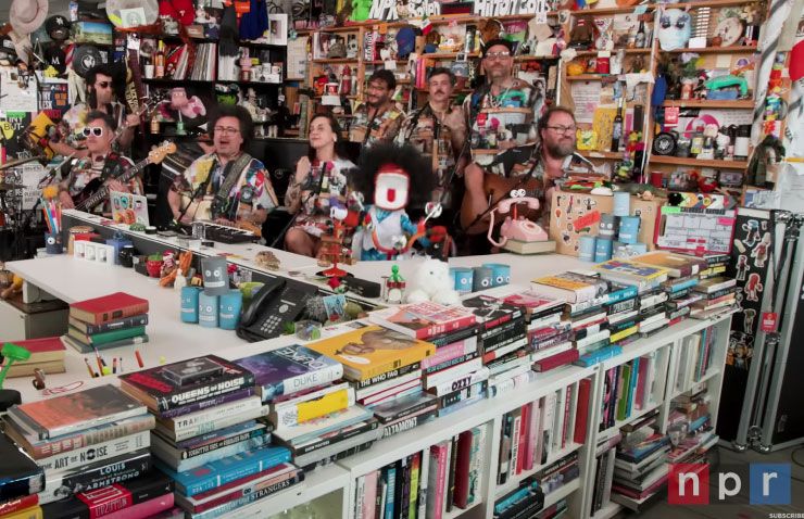 Tulio Triviño se dirige a la cámara con seriedad y afirma: “Esta es la presentación de 31 Minutos en Washington, que es exactamente el tiempo que expiran nuestras visas de trabajo”. Así, con un toque de humor inicia el concierto, transformando el pequeño escritorio de NPR en un tributo al ingenio chileno durante veinte minutos.